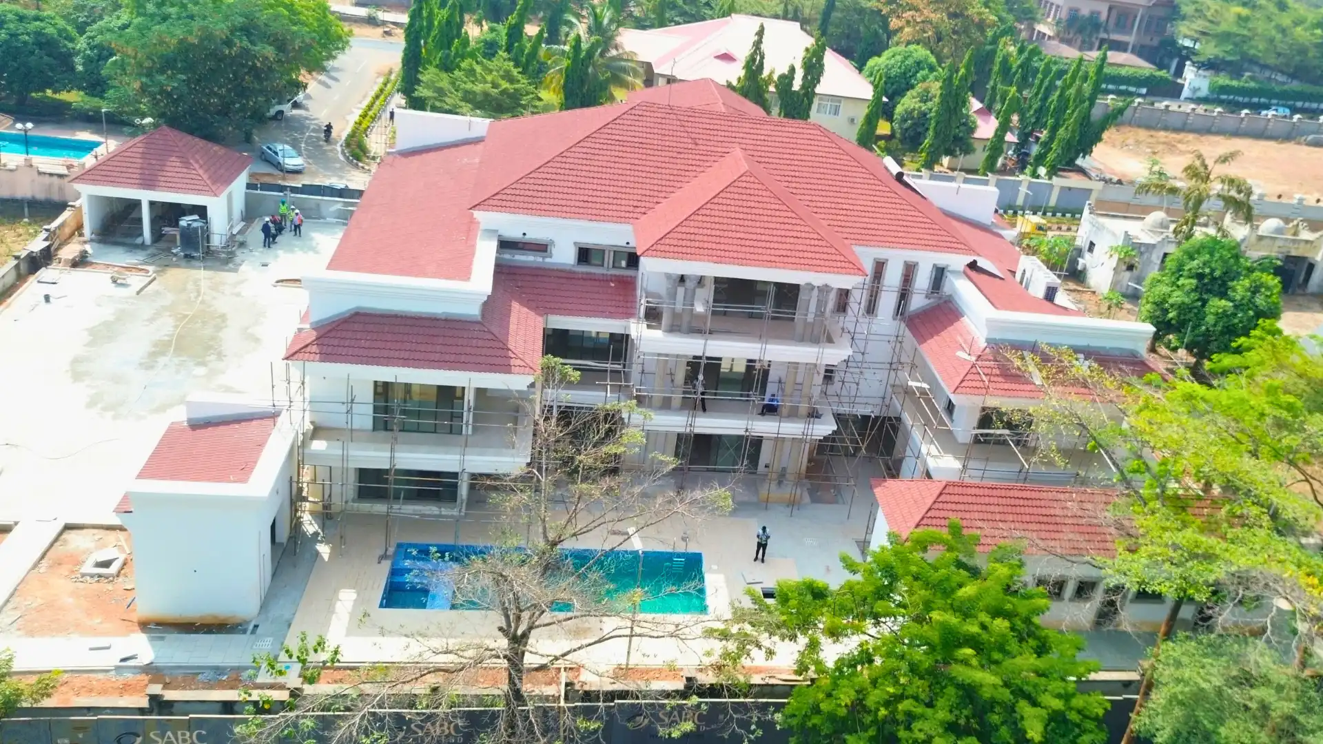 Construction of a 3-storey main building and other ancillary buildings namely: Guards’ House, Servants’ Quarters, Gate House, Generator House and Changing room. Scope of work – Substructure, frame, semi finishes, finishes and external works.